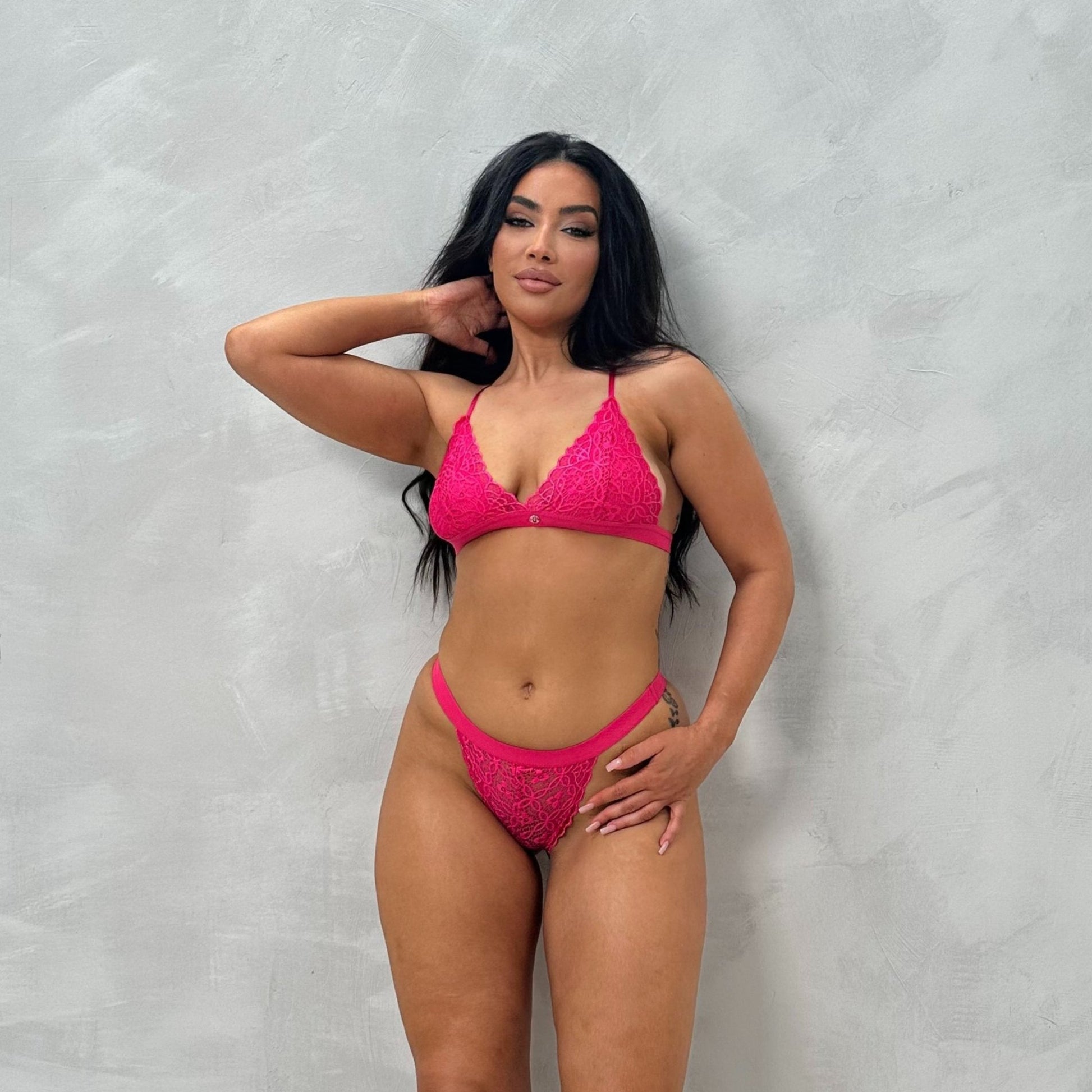 This two piece lingerie set is perfect for warm weather, featuring a lined bralet and tanga style briefs with a stretchy and comfortable waistband.