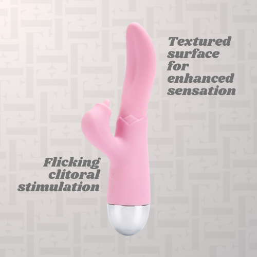 Experience heightened pleasure with the *NEW* Tongue Flicker Vibrator, designed to mimic the sensual feel of a real tongue. Its textured surface and innovative flicking clitoral tool deliver intense, teasing stimulation. Rechargeable and ready to excite, this vibrator brings a sexy, lifelike touch that elevates your intimate moments.