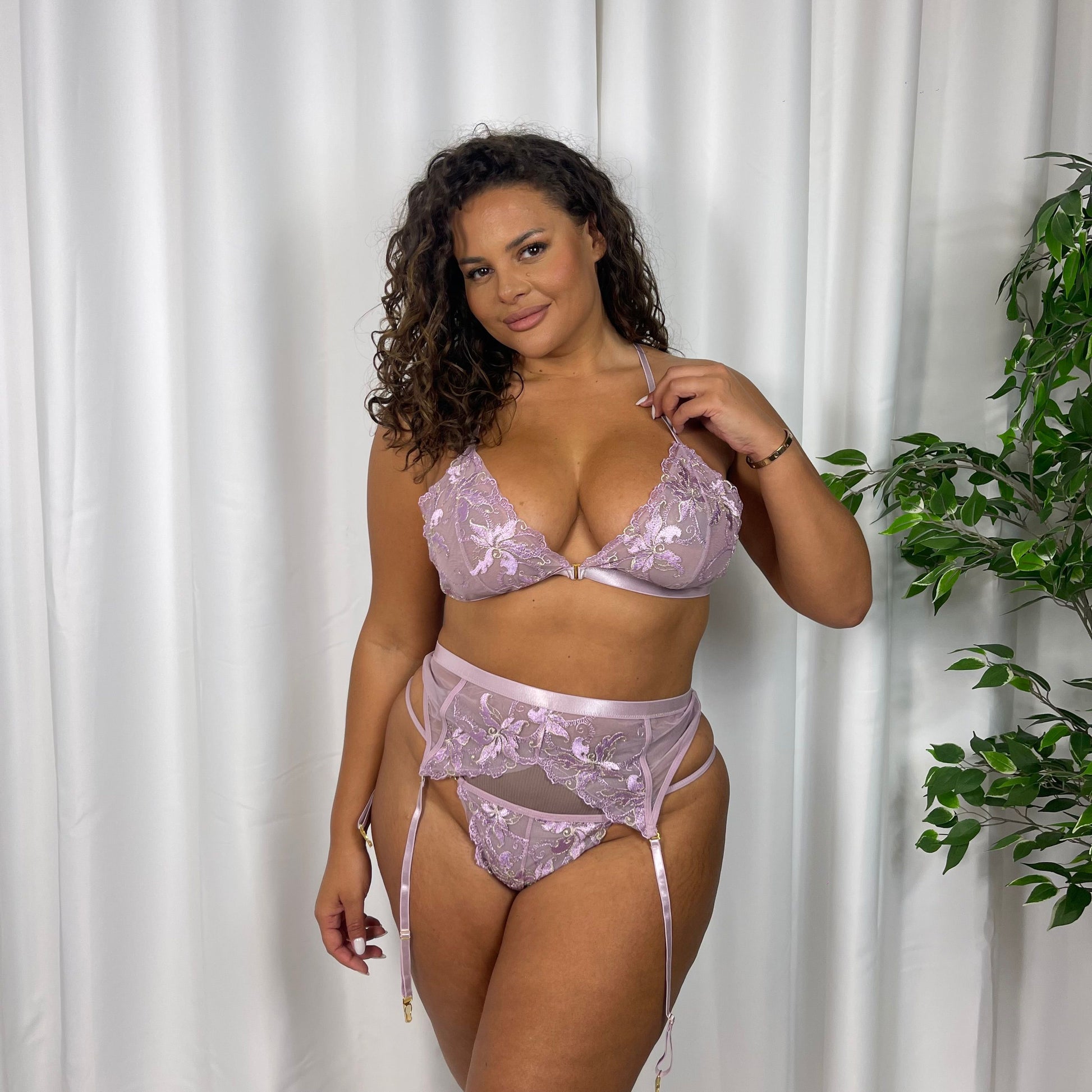 Introducing TIA, our sexy 3 piece suspender set in delicate lace.